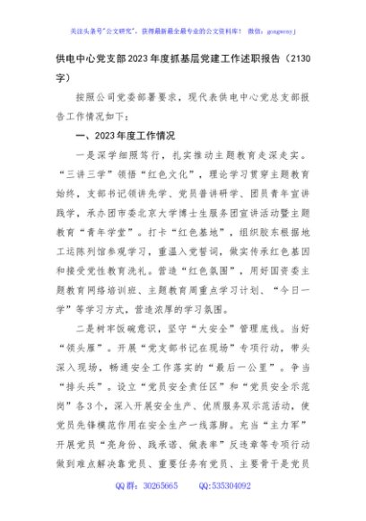 XXX有限公司党支部书记履行抓基层党建责任情况说明