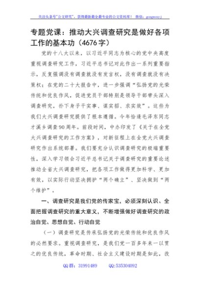 / 专题党课:推动大兴调查研究是做好各项工作的基本功