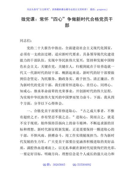 / 微党课:常怀“四心” 争做新时代合格党员干部