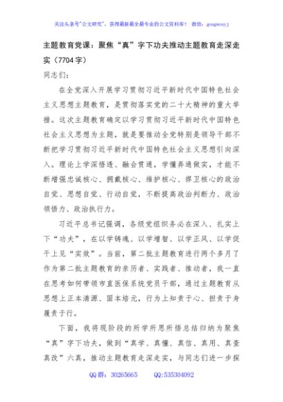 主题教育党课:聚焦“真”字下功夫推动主题教育走深走实