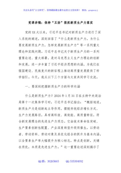 / 党课讲稿:保持“五劲”狠抓新质生产力落实