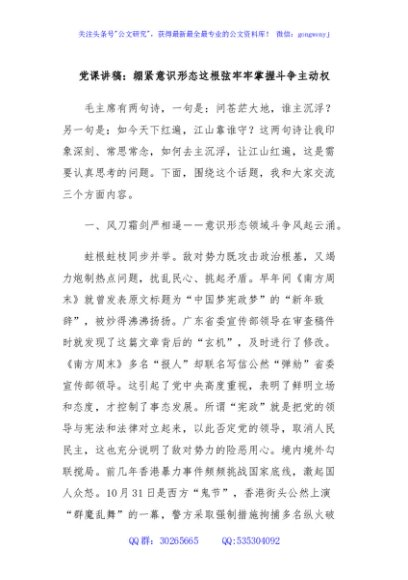 / 党课讲稿:绷紧意识形态这根弦牢牢掌握斗争主动权