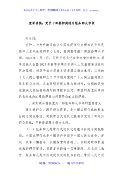 / 党课讲稿:党员干部要切实提升服务群众本领