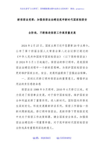 / 新保密法党课:加强保密法治建设筑牢新时代国家秘密安全防线、不断推进保密工作高质量发展