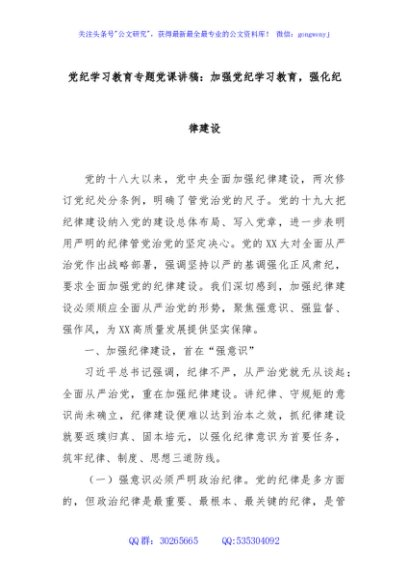/ 党纪学习教育专题党课讲稿:加强党纪学习教育,强化纪律建设