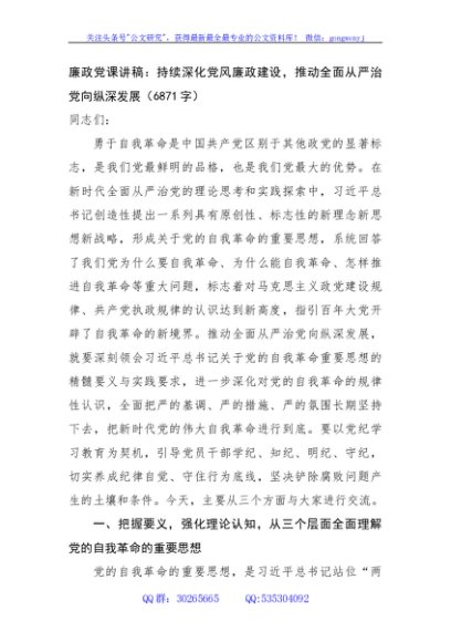 / 廉政党课讲稿:持续深化党风廉政建设,推动全面从严治党向纵深发展(6871字)