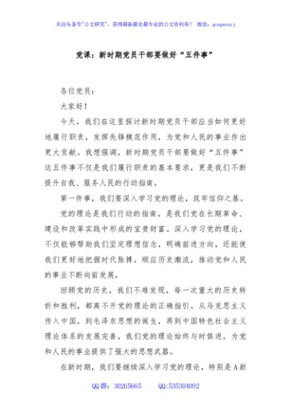/ 党课:新时期党员干部要做好“五件事”
