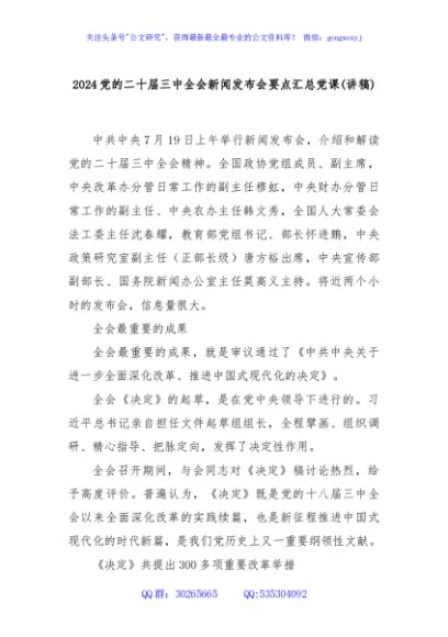 / 2024党的二十届三中全会新闻发布会要点汇总党课(讲稿)