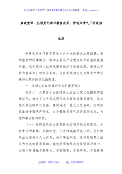 / 廉政党课:巩固党纪学习教育成果,营造风清气正的政治生态