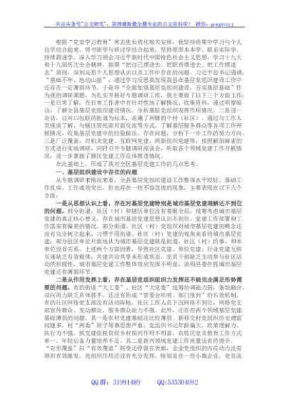 / 县委书记全面加强基层党组织建设夯实基层基础调研报告