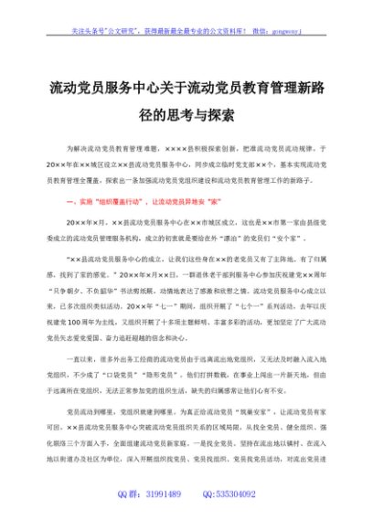/ 调研报告参考:流动党员教育管理新路径的思考与探索
