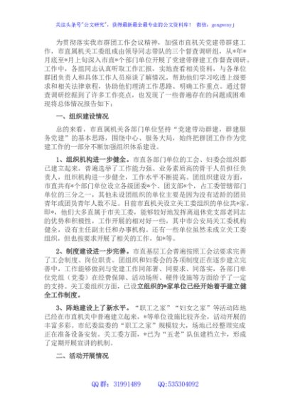 / 市直机关工委党建带群建工作调研报告