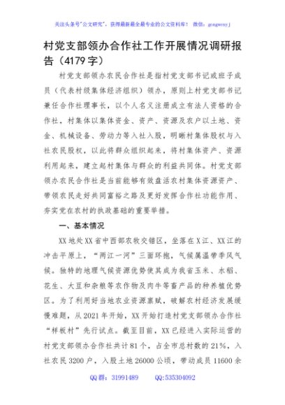 / 村党支部领办合作社工作开展情况调研报告