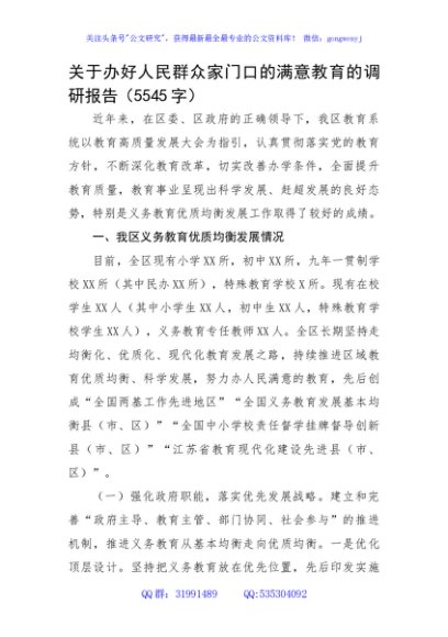 / 关于办好人民群众家门口的满意教育的调研报告