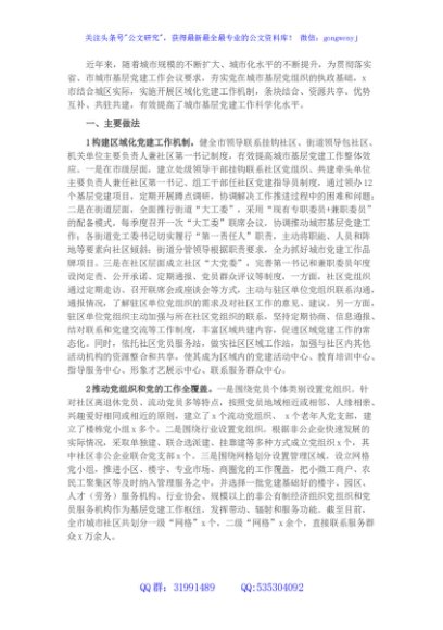 / 全市城市基层党建工作调研报告