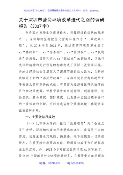 / 关于深圳市营商环境改革迭代之路的调研报告