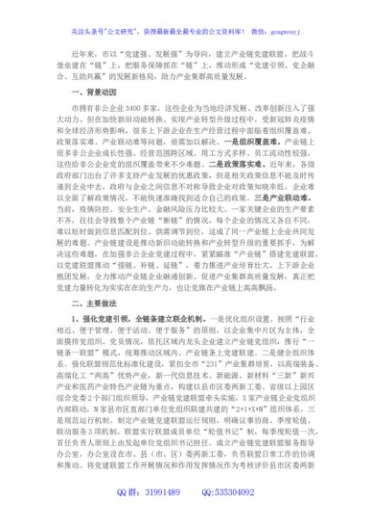 / 产业链党建联盟助力产业集群高质量发展调研报告