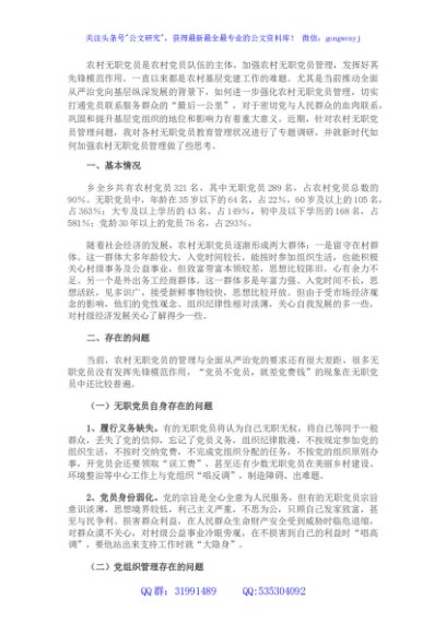/ 农村无职党员管理调研报告