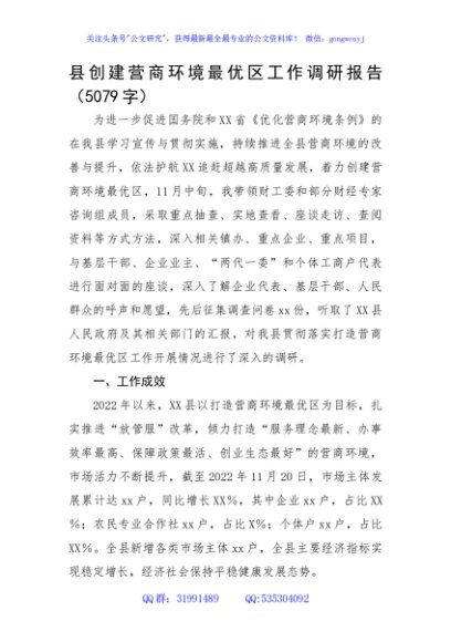 / 县创建营商环境最优区工作调研报告
