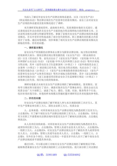 / 企业安全生产法律法规落实情况调研报告