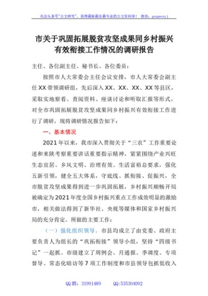/ 市关于巩固拓展脱贫攻坚成果同乡村振兴有效衔接工作情况的调研报告
