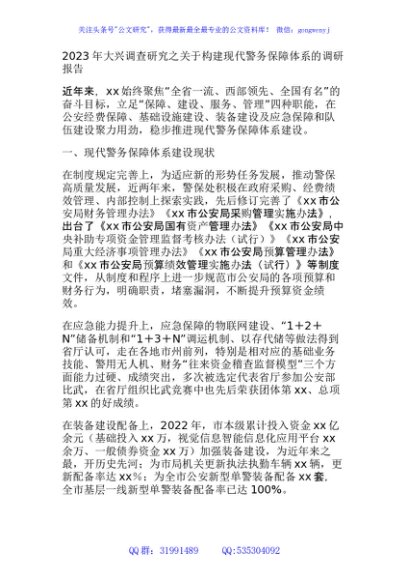 / 2023年大兴调查研究之关于构建现代警务保障体系的调研报告