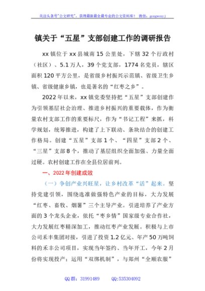 / 镇关于“五星”支部创建工作的调研报告