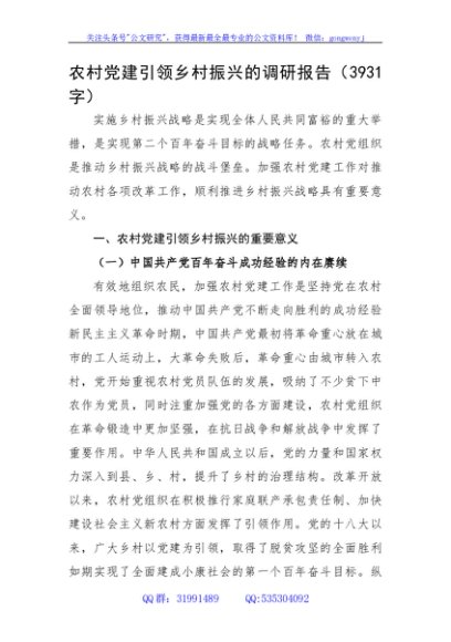 / 农村党建引领乡村振兴的调研报告