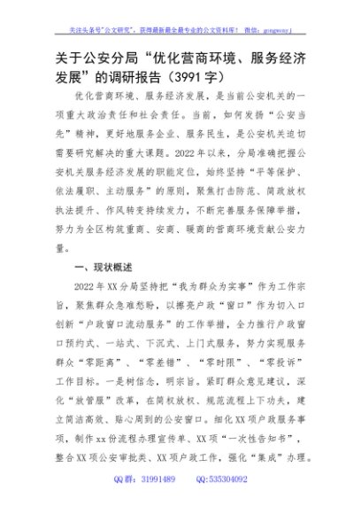 / 关于公安分局“优化营商环境、服务经济发展”的调研报告