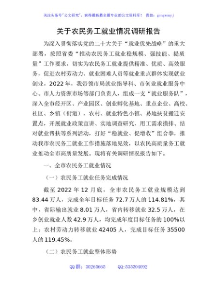 / 农民务工就业情况调研报告