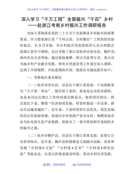 / 深入学习“千万工程”全面振兴“千百”乡村——赴浙江考察乡村振兴工作调研报告