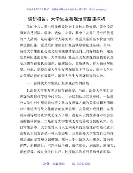 / 调研报告:大学生友善观培育路径探析