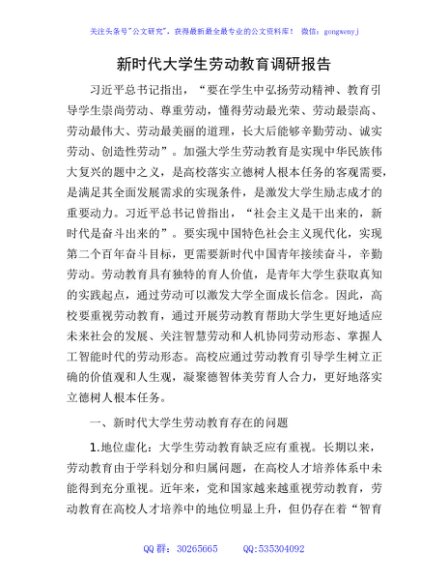 / 新时代大学生劳动教育调研报告