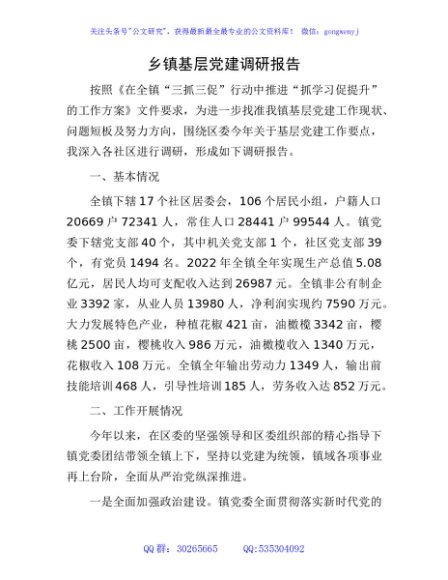 / 乡镇基层党建调研报告