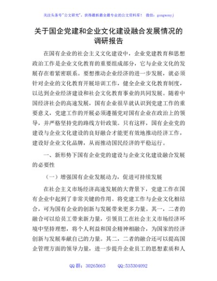 / 国企党建和企业文化建设融合发展情况的调研报告(公司)