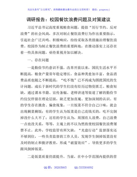 / 调研报告:校园餐饮浪费问题及对策建议