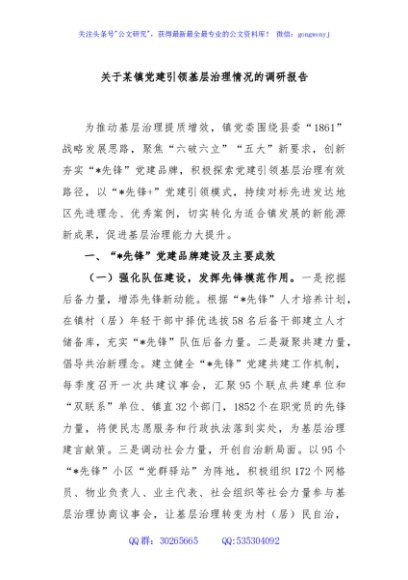 / 关于某镇党建引领基层治理情况的调研报告