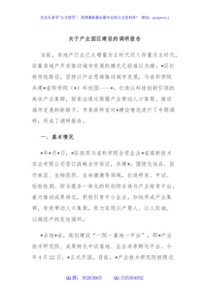 / 关于产业园区建设的调研报告