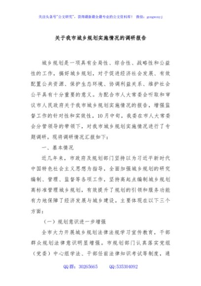 / 关于我市城乡规划实施情况的调研报告