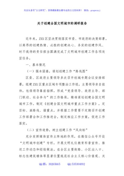 / 关于创建全国文明城市的调研报告