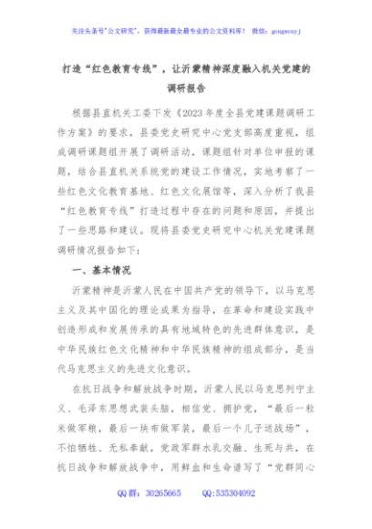/ 打造“红色教育专线”,让沂蒙精神深度融入机关党建的调研报告