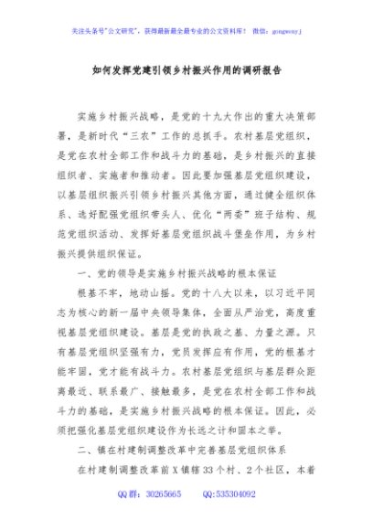 / 如何发挥党建引领乡村振兴作用的调研报告