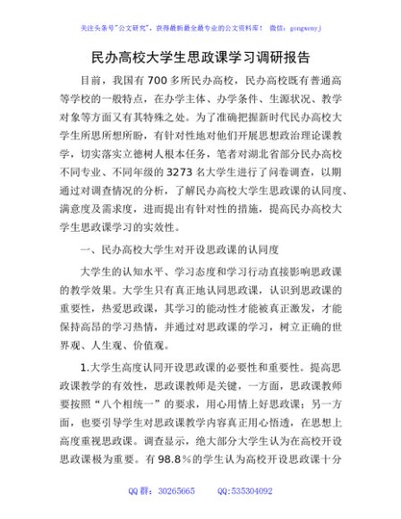 / 民办高校大学生思政课学习调研报告