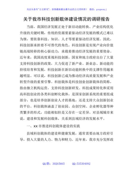 / 我市科技创新载体建设情况的调研报告