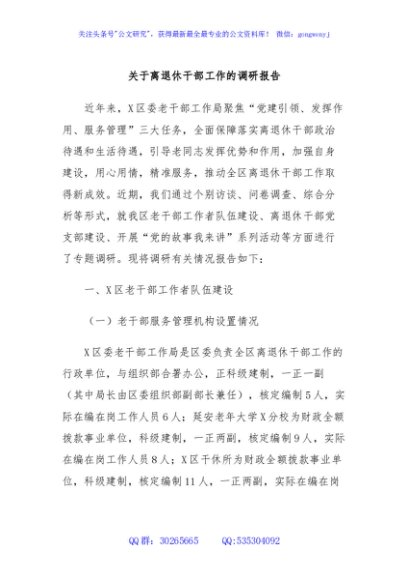 / 关于离退休干部工作的调研报告