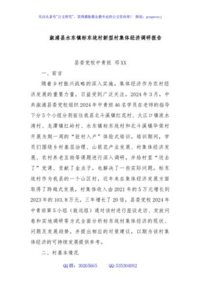 / 溆浦县水东镇标东垅村新型村集体经济调研报告