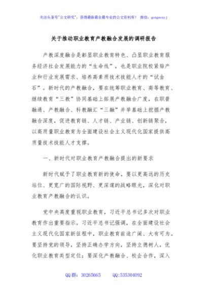 / 关于推动职业教育产教融合发展的调研报告