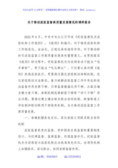 / 关于推动派驻监督高质量发展情况的调研报告