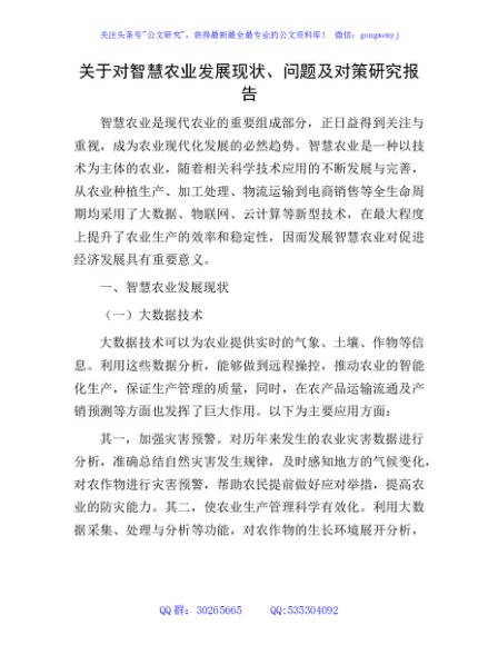 / 对智慧农业发展现状、问题及对策研究报告(调研报告)
