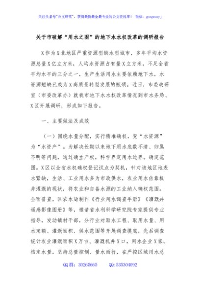 / 关于市破解“用水之困”的地下水水权改革的调研报告